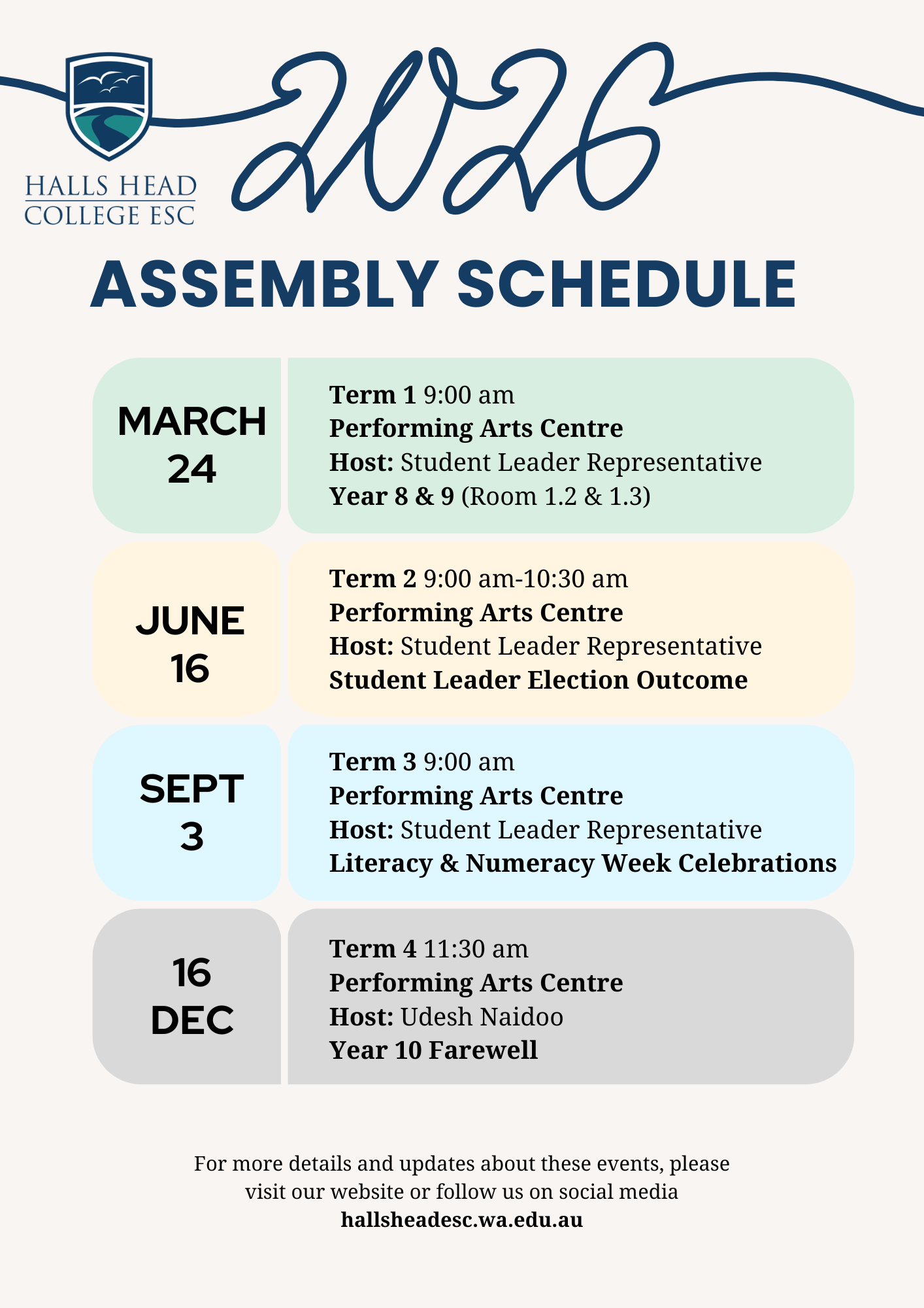 “Halls Head College Education Support Centre respectfully acknowledge the past and present traditional custodians of this land on which our school resides, the Bindjareb Noongar people. We also acknowledge the contributions of Aboriginal Australians and non-Aboriginal Australians in the education of all children and people in this country we all live in and share together – Australia.”